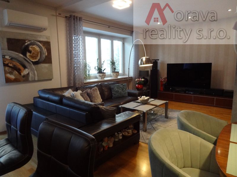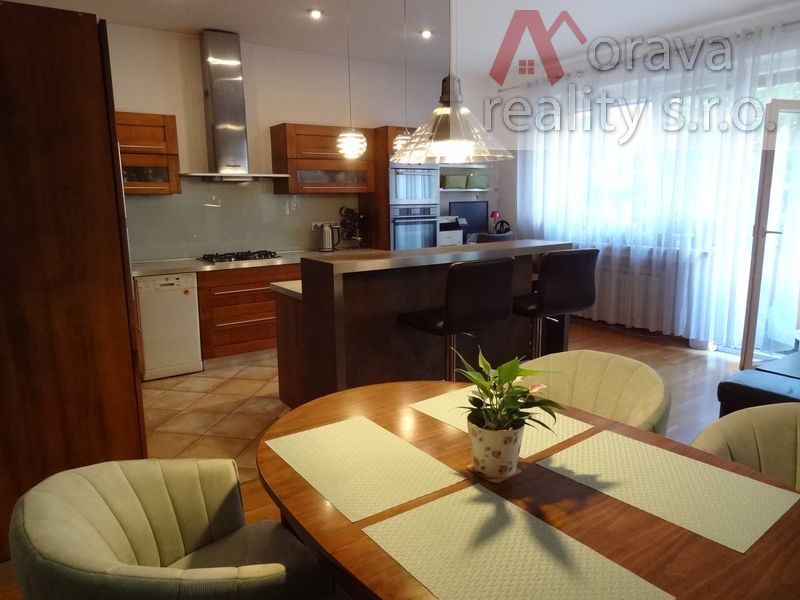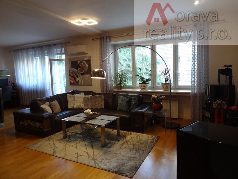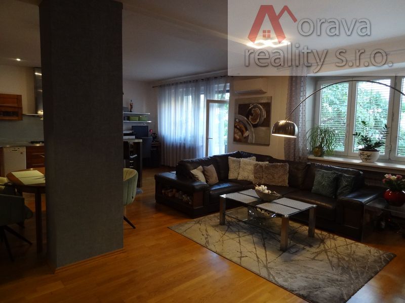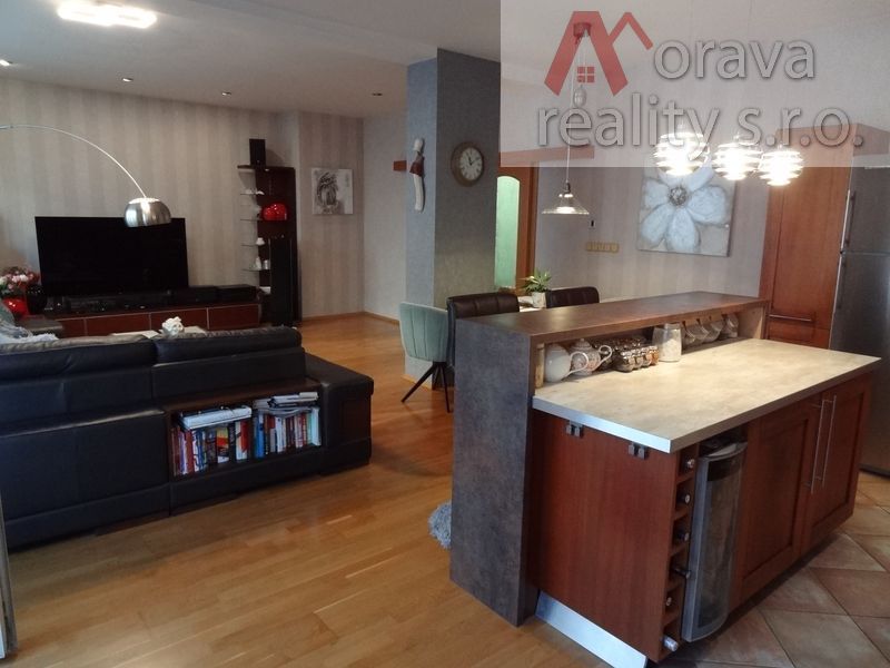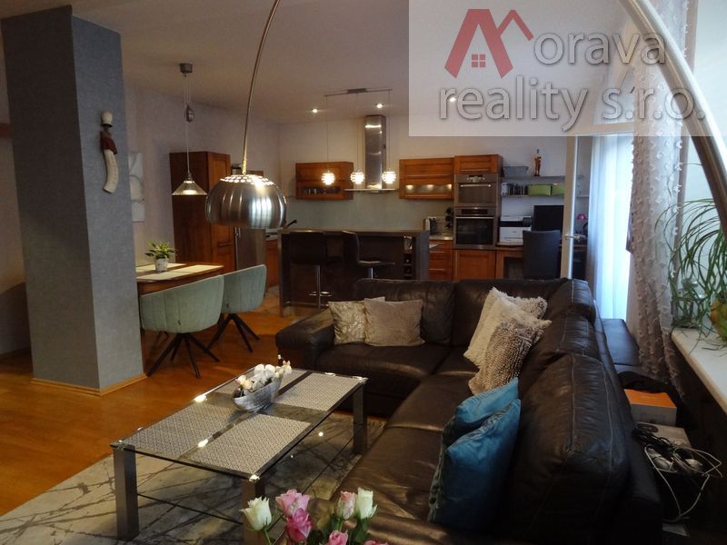 Srdcem bytu je klimatizovaný obývací pokoj s kuchyňským koutem (45 m2). Kuchyně je plně vybavená a je zde i malý balkon.